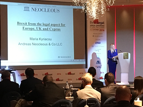 A number of speakers from our firm took part in the conference, including Maria Kyriacou, Philippos Aristotelous, Nicholas Ktenas, Costas Stamatiou and Elena Christodoulou, covering a wide range of topics from the possible effects of Brexit on Cyprus to legal methods of protecting the interests of investors in Cyprus. To view the presentations from members of our firm, please use the links below.
