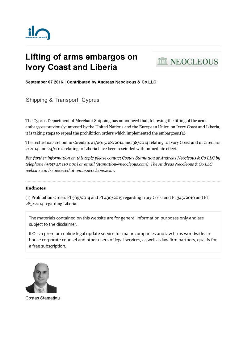 Law Firm: Andreas Neocleous & Co LLC Publisher: International Law Office