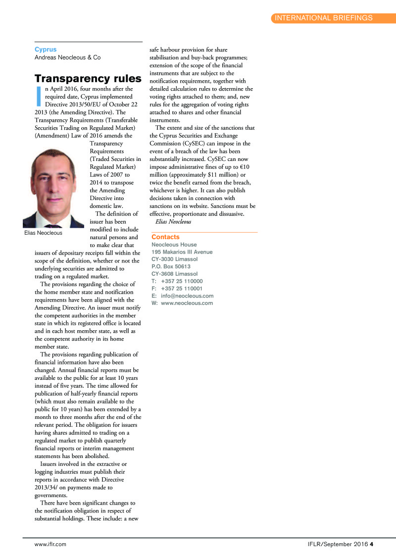Law Firm: Andreas Neocleous & Co LLC Publisher: International Financial Law Review